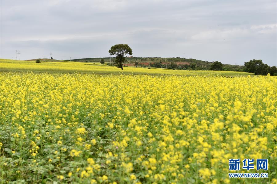 这是山西省右玉县威远镇的油菜花(7月24日摄)。