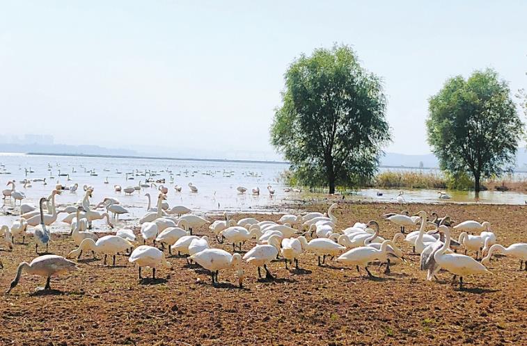 据了解,作为候鸟,大天鹅在中国的迁徙路线分为3条,其中,中线以俄罗斯、蒙古国为起点,经由内蒙古、山西等地沿黄河迁徙,在黄河中游、长江中下游越冬。近年来,随着平陆黄河湿地生态环境不断改善,每年到此越冬的白天鹅数量在1万只左右。